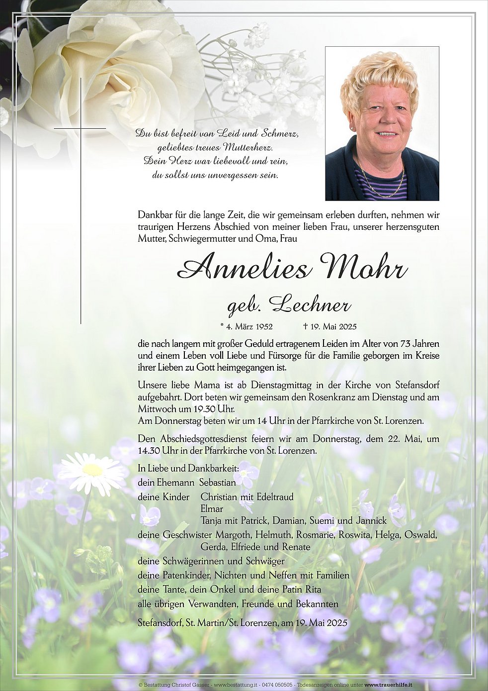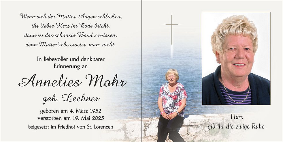 Unsere liebe Mama ist ab Dienstagmittag in der Kirche von Stefansdorf aufgebahrt. Dort beten wir gemeinsam den Rosenkranz am Dienstag und am Mittwoch um 19.30 Uhr.