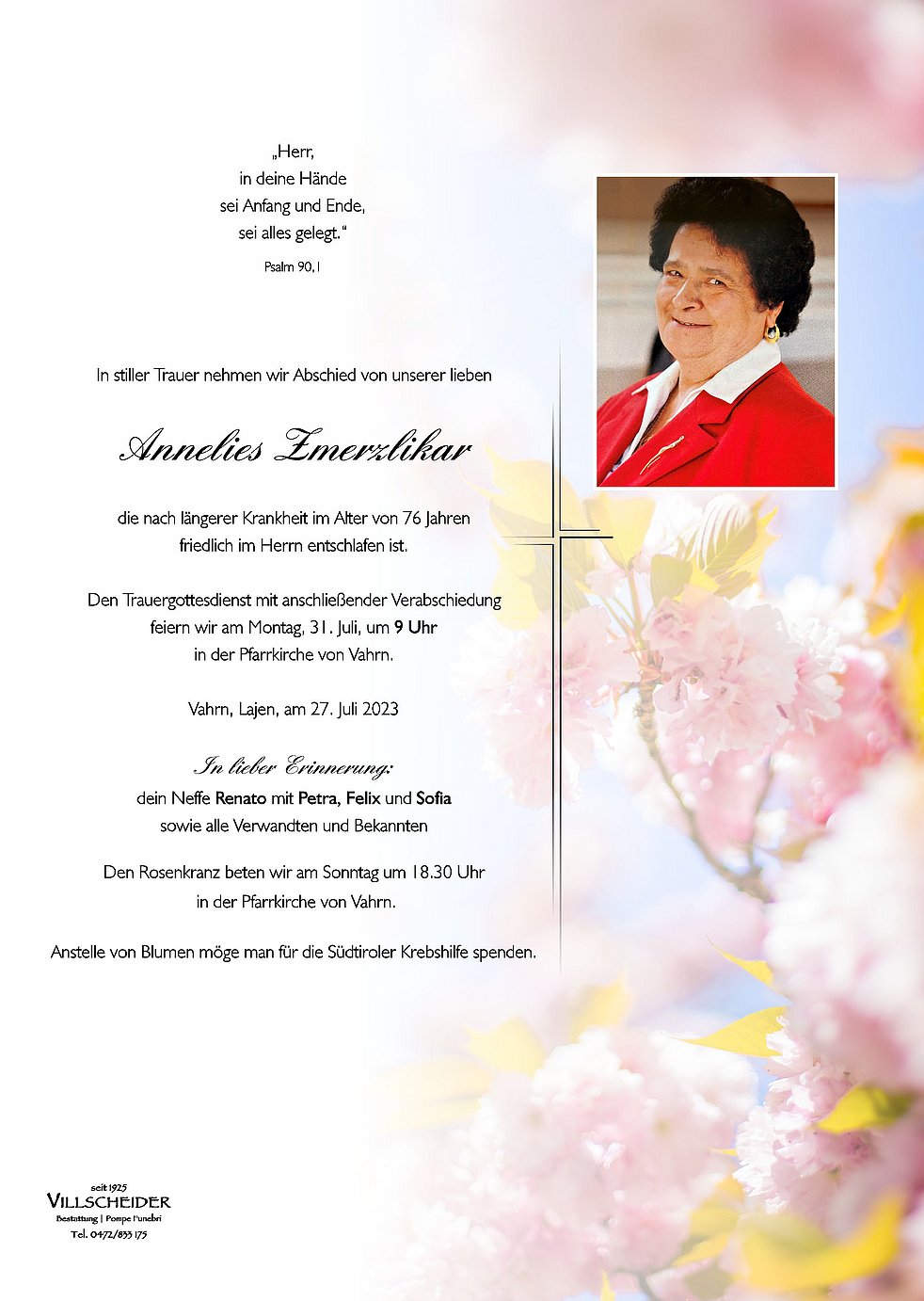 Trauerfeier: 31.07. - 09:00 Uhr Vahrn