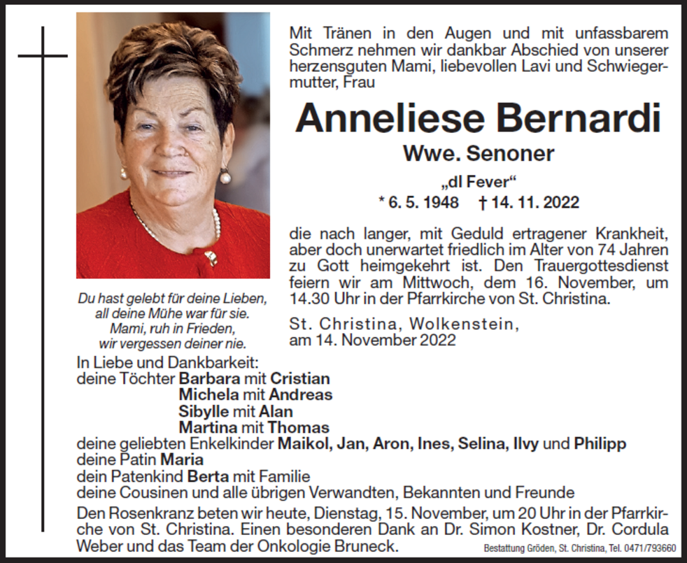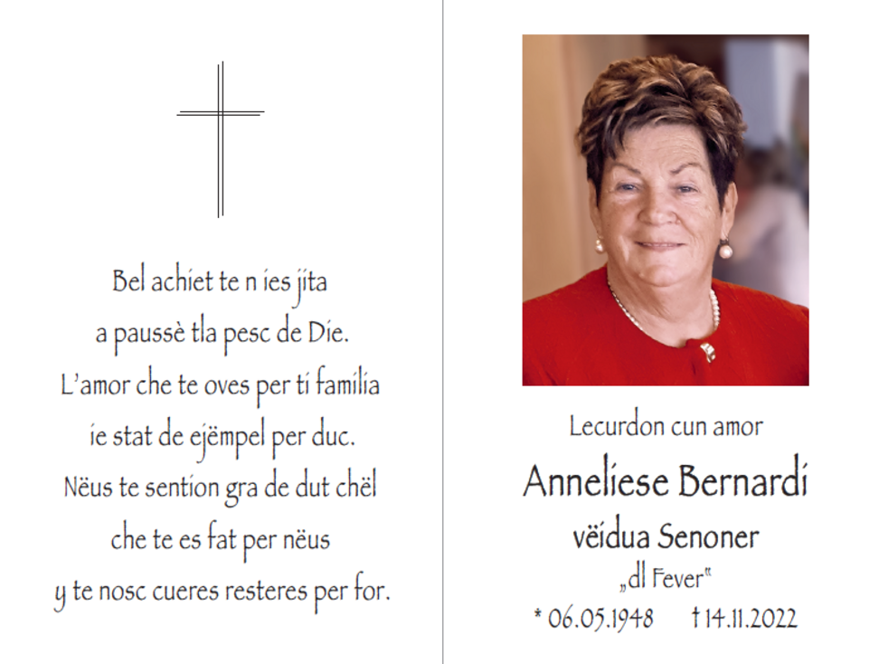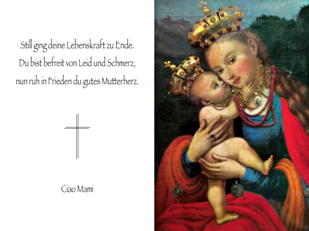 Den Trauergottesdienst feiern wir am Mittwoch, dem 16. November, um 14.30 Uhr in der Pfarrkirche von St. Christina.
