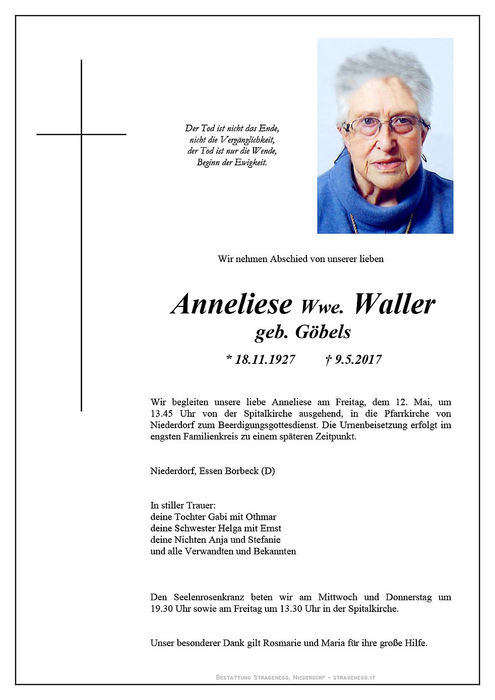 Trauerfeier: 12.05. - 14:00 Uhr Niederdorf