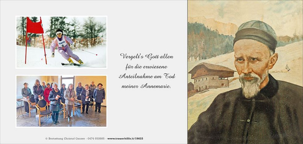 Vergelt’s Gott auch allen, die an der Trauerfeier unserer lieben Annemarie teilnehmen.