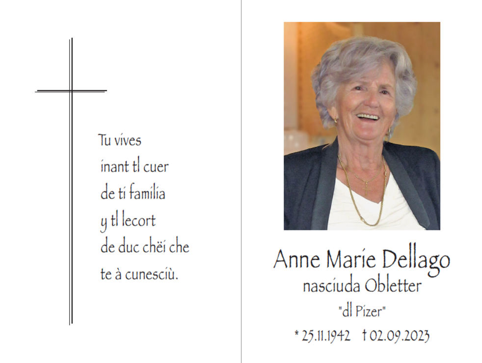 Den Trauergottesdienst mit anschließender Verabschiedung feiern wir am Dienstag, dem 05. September, um 14.30 Uhr in der Pfarrkirche von St. Ulrich. Die Urne wird nach erfolgter Einäscherung im Kreise der Familie im Ortsfriedhof beigesetzt.