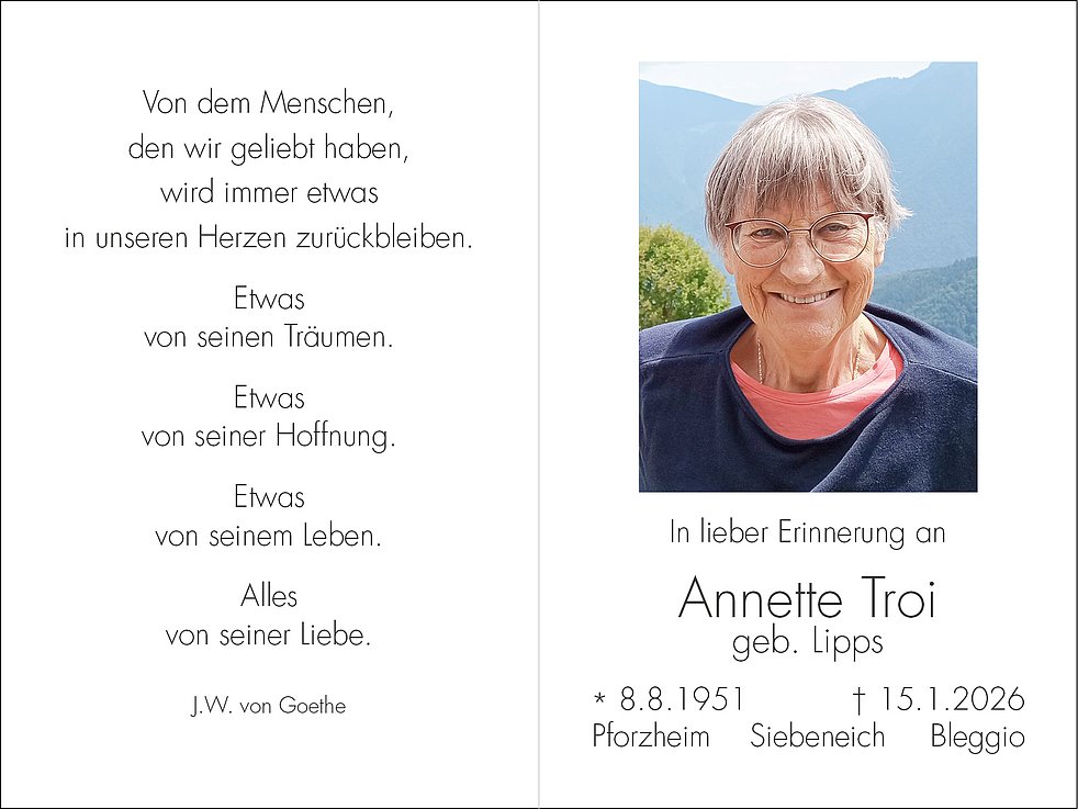 Traurigen Herzens nehmen wir Abschied von meiner lieben Frau, unserer guten Mami und Oma