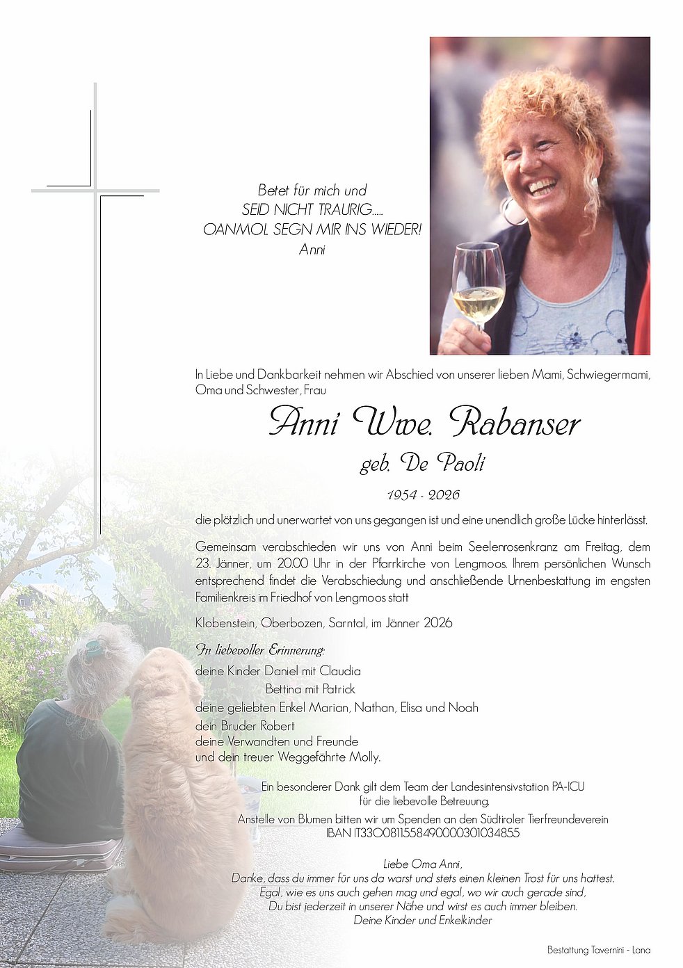 Zum Verfassen von Kondolenzen müssen Sie sich in Ihr TrauerHilfe.it Profil einloggen.