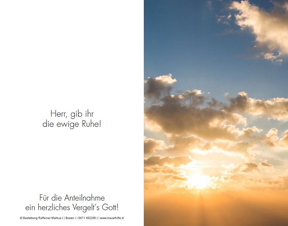 Allen, die an den Seelenrosenkränzen und an der Beerdigung teilnehmen, ein herzliches Vergelt’s Gott.