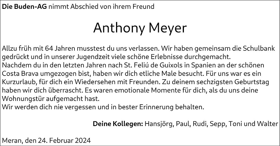 Ein Dank deinen treuen Freunden für die Sorgen um dich und die Mitteilung über die Trauerhilfe.