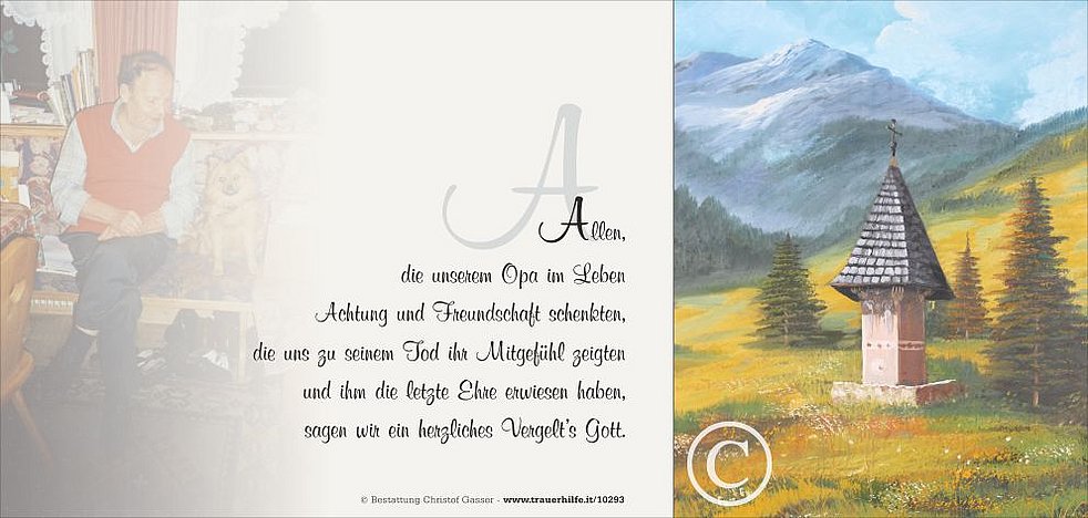 Ein besonderer Dank gilt dem Hausarzt Dr. Martin Vieider und den Sprengelschwestern für die liebevolle Betreuung und Begleitung.