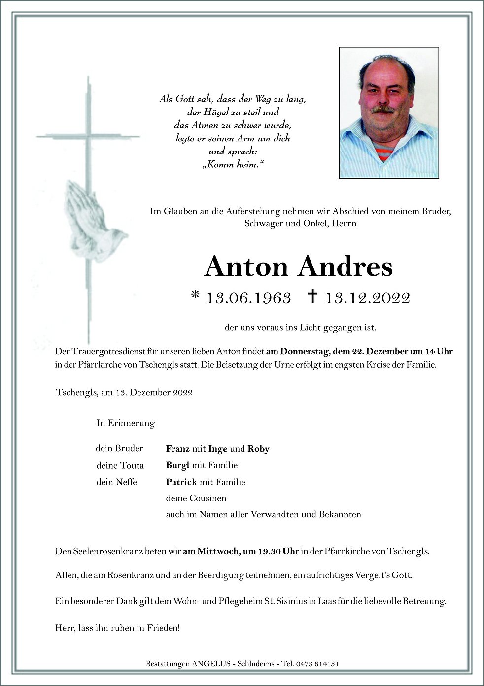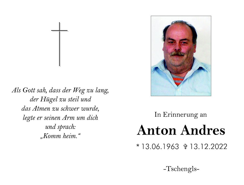 Lieber Touni. Oll zu friah bisch du von ins gongen. In Kortner in der Esso oder in Edelweiß worn olm flott mit dir, ob an Socker oder an Watter