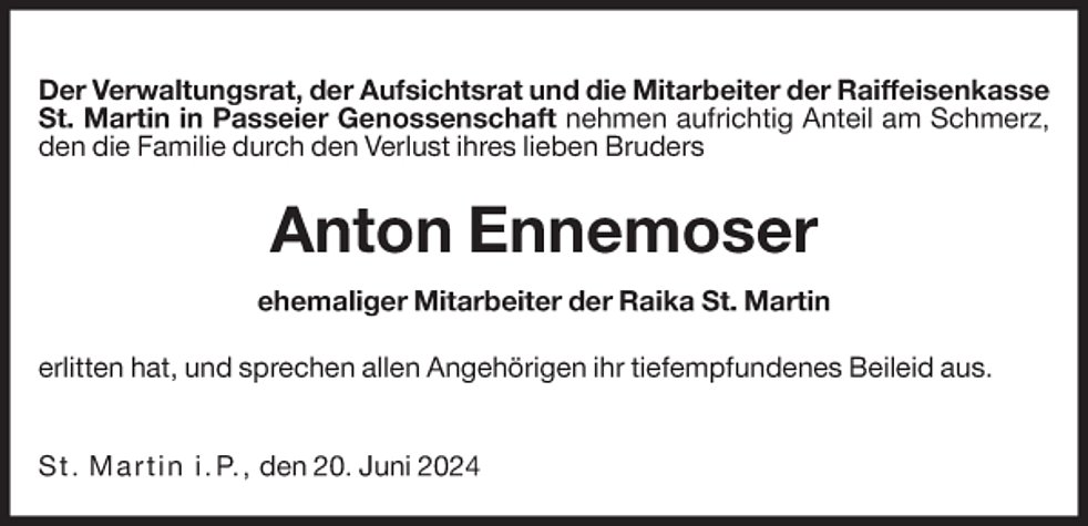 Den Trauergottesdienst mit anschließender Beisetzung feiern wir am Samstag, 22. Juni, um 8.30 Uhr in der Pfarrkirche von St. Martin.