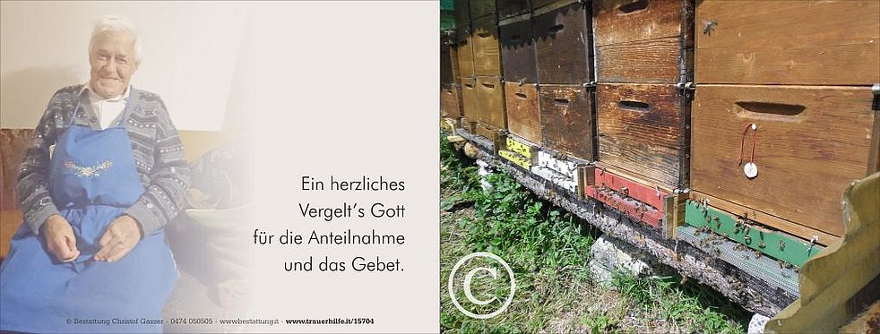 Ein besonderer Dank gilt dem Hausarzt Dr. Martin Kofler, allen vom Hauspflegedienst sowie den Sprengelschwestern.