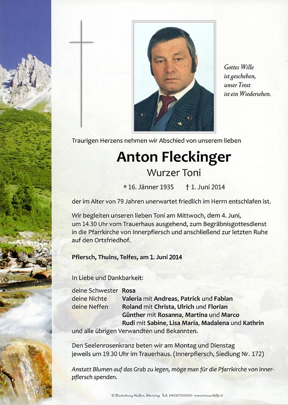 Anstatt Blumen auf das Grab zu legen, möge man für die Pfarrkirche von Innerpflersch spenden.