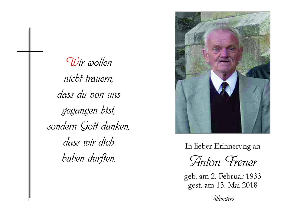 Wir wollen nicht trauern, dass du von uns gegangen bist, sondern Gott danken, dass wir dich haben durften.