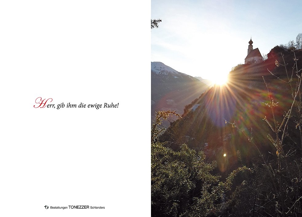Ein besonderer Dank gilt unserem Hausarzt Dr. Josef Plangger, dem gesamten Team der Abteilung Day-Hospital des Krankenhauses von Schlanders sowie dem Hauskrankenpflegedienst des Sprengels Mittelvinschgau für die liebevolle Betreuung.