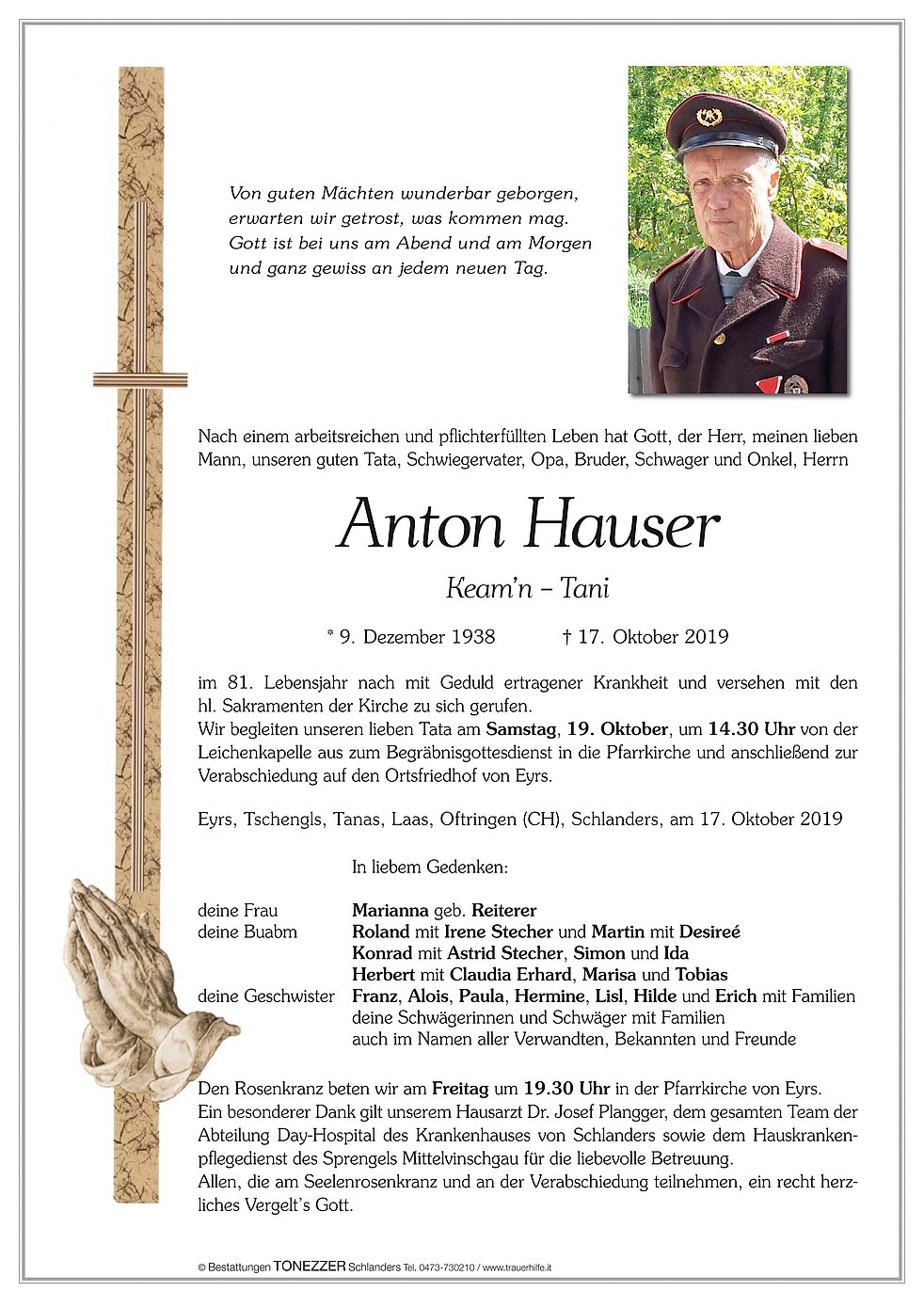 Nach einem arbeitsreichen und pflichterfüllten Leben hat Gott, der Herr, meinen lieben Mann, unseren guten Tata, Schwiegervater, Opa, Bruder, Schwager und Onkel, Herrn
