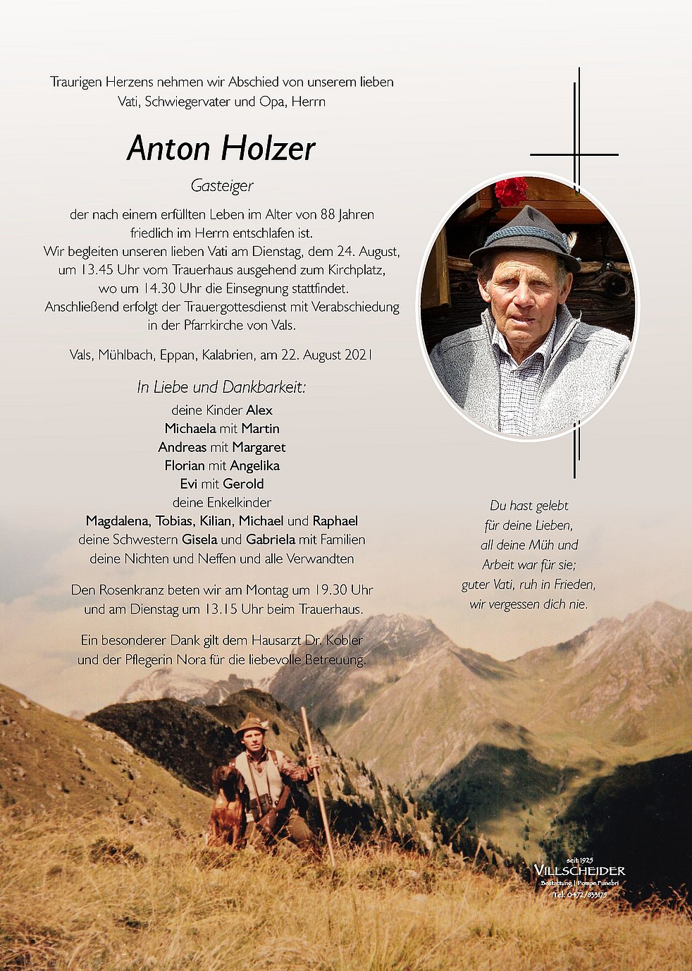 Trauerfeier: 24.08. - 14:30 Uhr Vals
