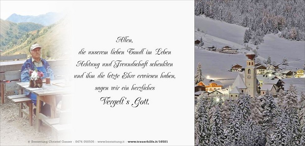 und an der Trauerfeier teilnehmen und unseren lieben Tondl