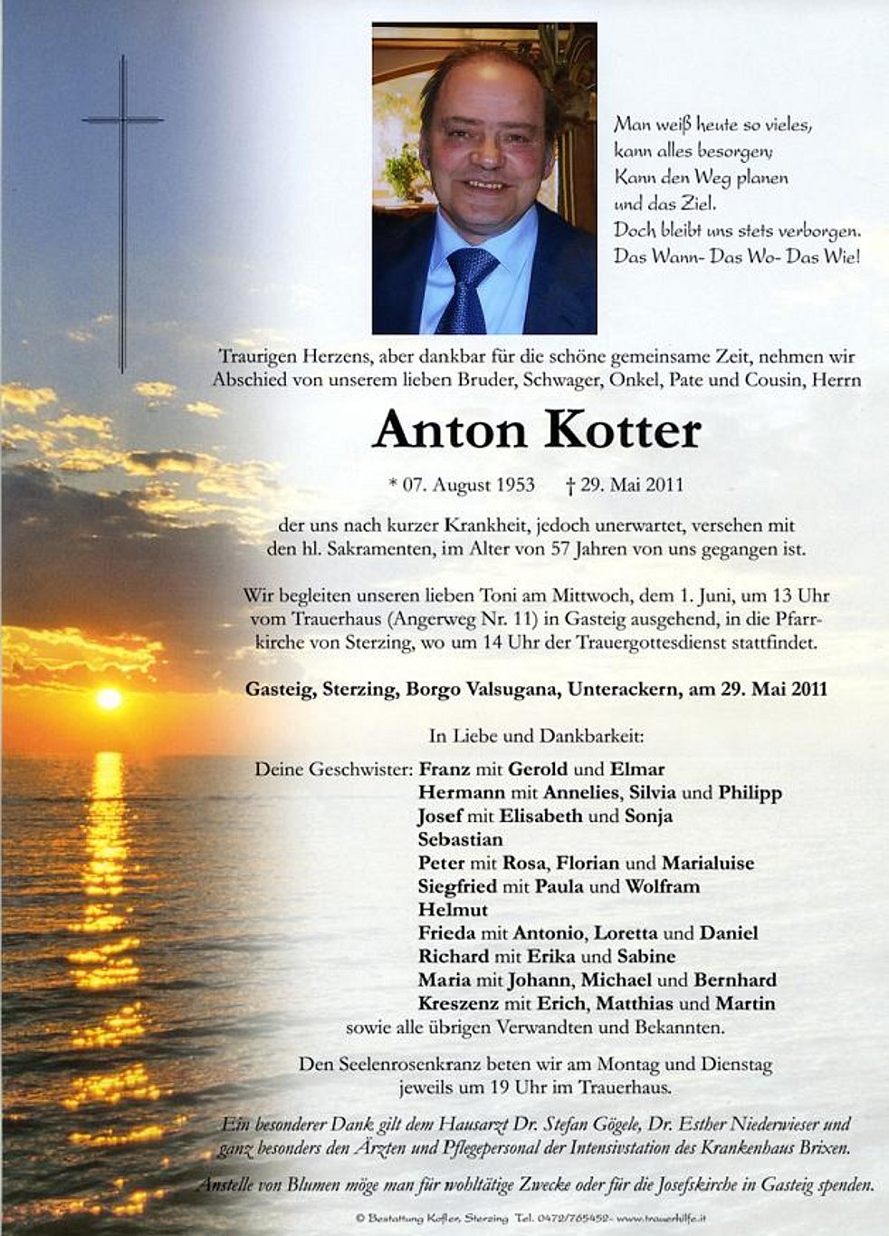 der uns nach kurzer Krankheit, jedoch unerwartet, versehen mit den hl. Sakramenten,