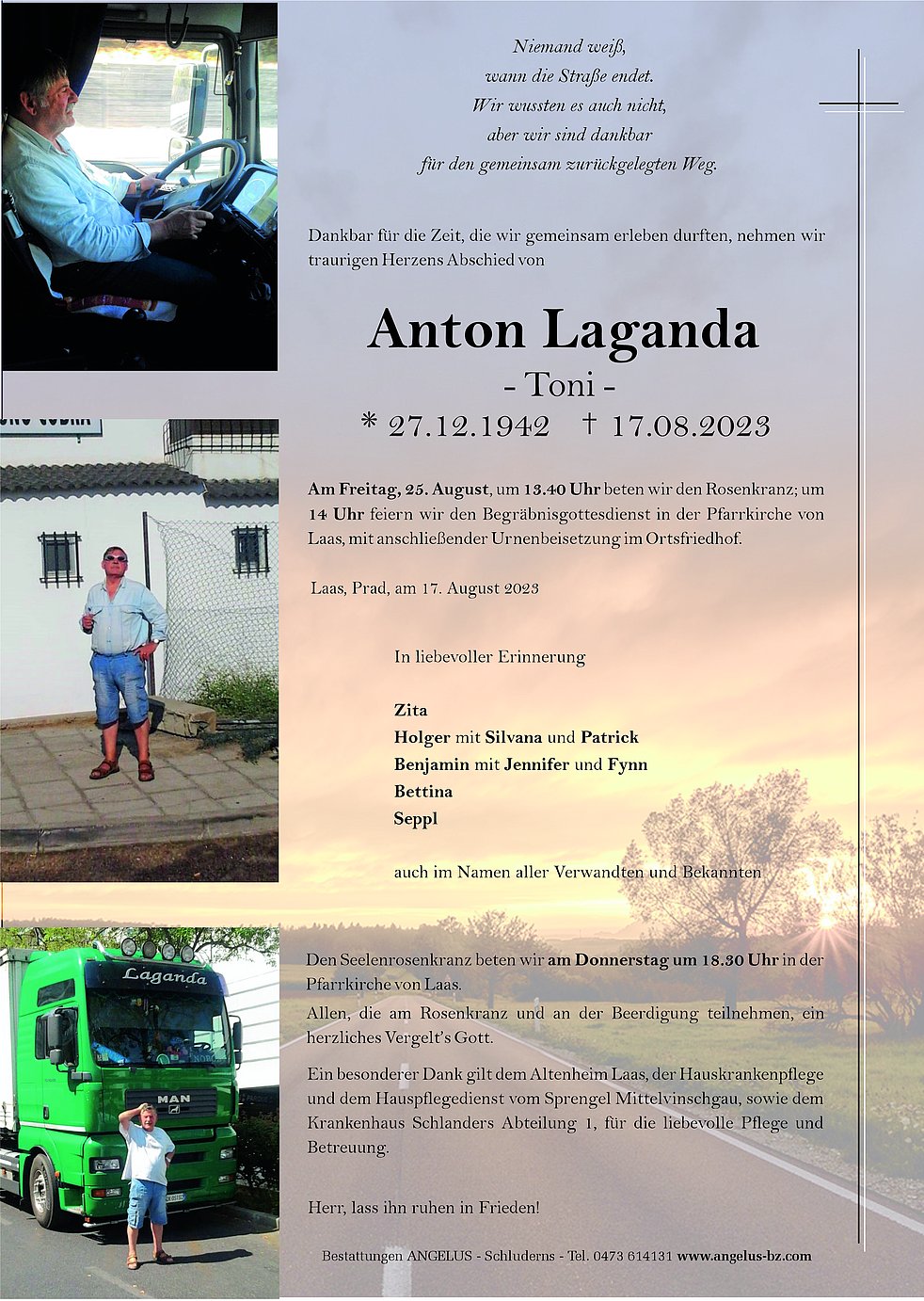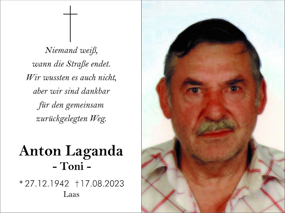 Begräbnisgottesdienst: 25.08. - 14:00 Uhr Pfarrkirche von Laas