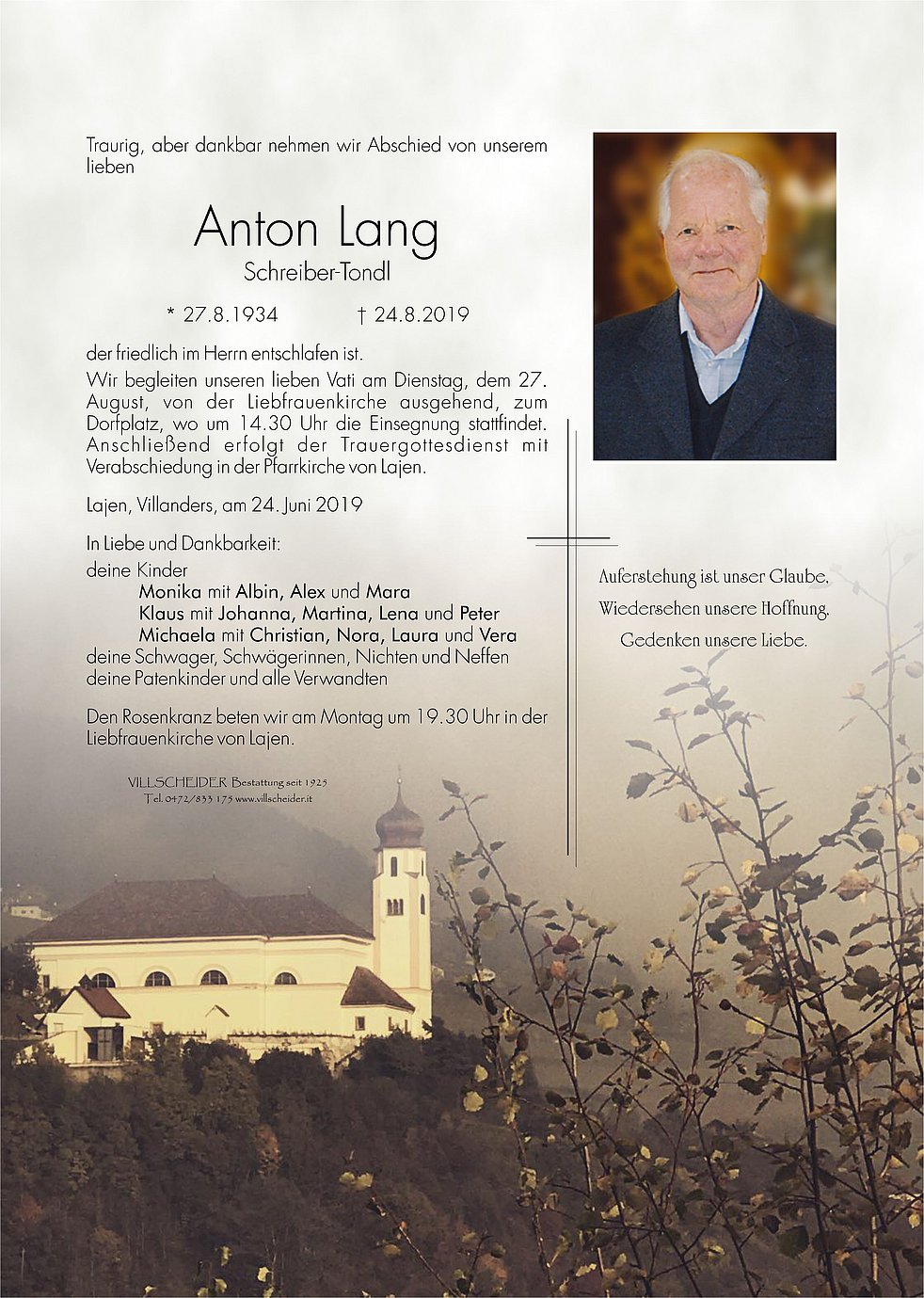 Trauerfeier: 27.08. - 14:30 Uhr Lajen
