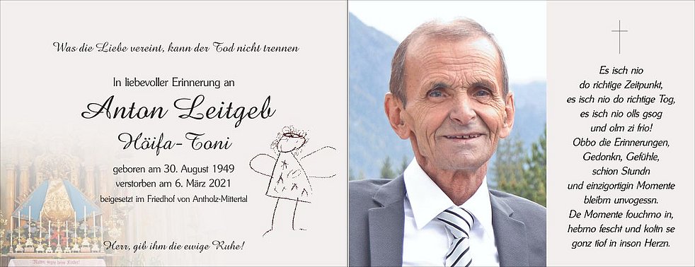 Unser lieber Toni ist zur persönlichen Verabschiedung ab Montagnachmittag in der Friedhofskapelle aufgebahrt.