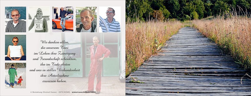 Ein besonderer Dank gilt allen Ärzten und dem Pflegepersonal die meinen Mann und Tata in den letzten Jahren begleitet haben.