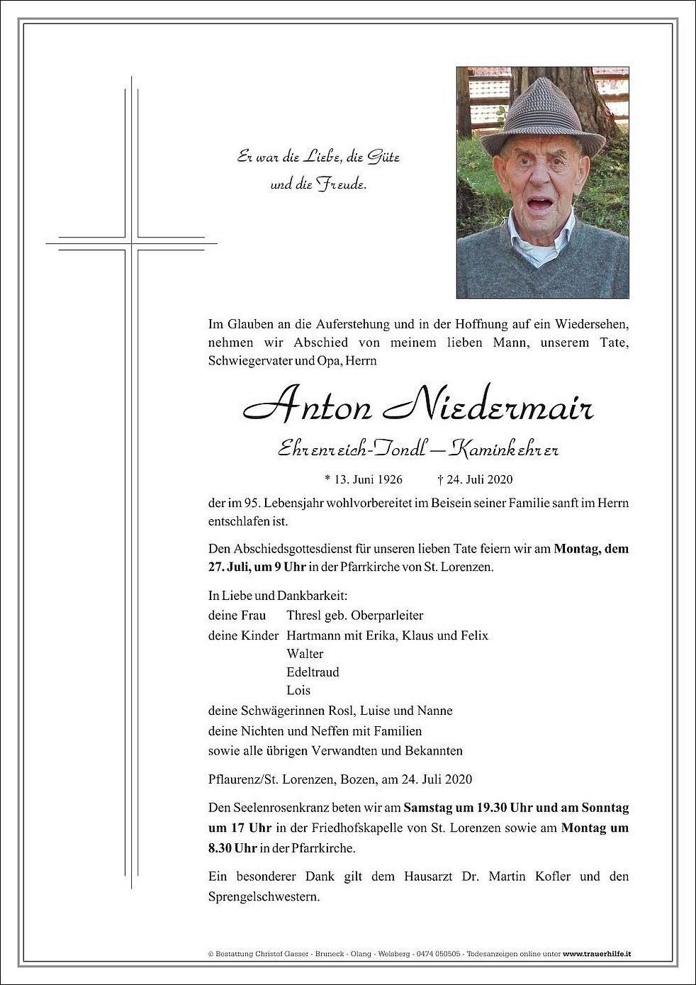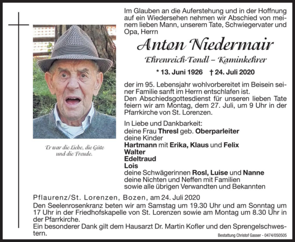 Den Abschiedsgottesdienst für unseren lieben Tate feiern wir am Montag, dem 27. Juli, um 9 Uhr in der Pfarrkirche von St. Lorenzen.
