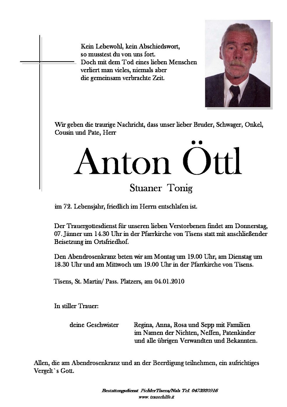 Der Trauergottesdienst für unseren lieben Verstorbenen findet am Donnerstag,
