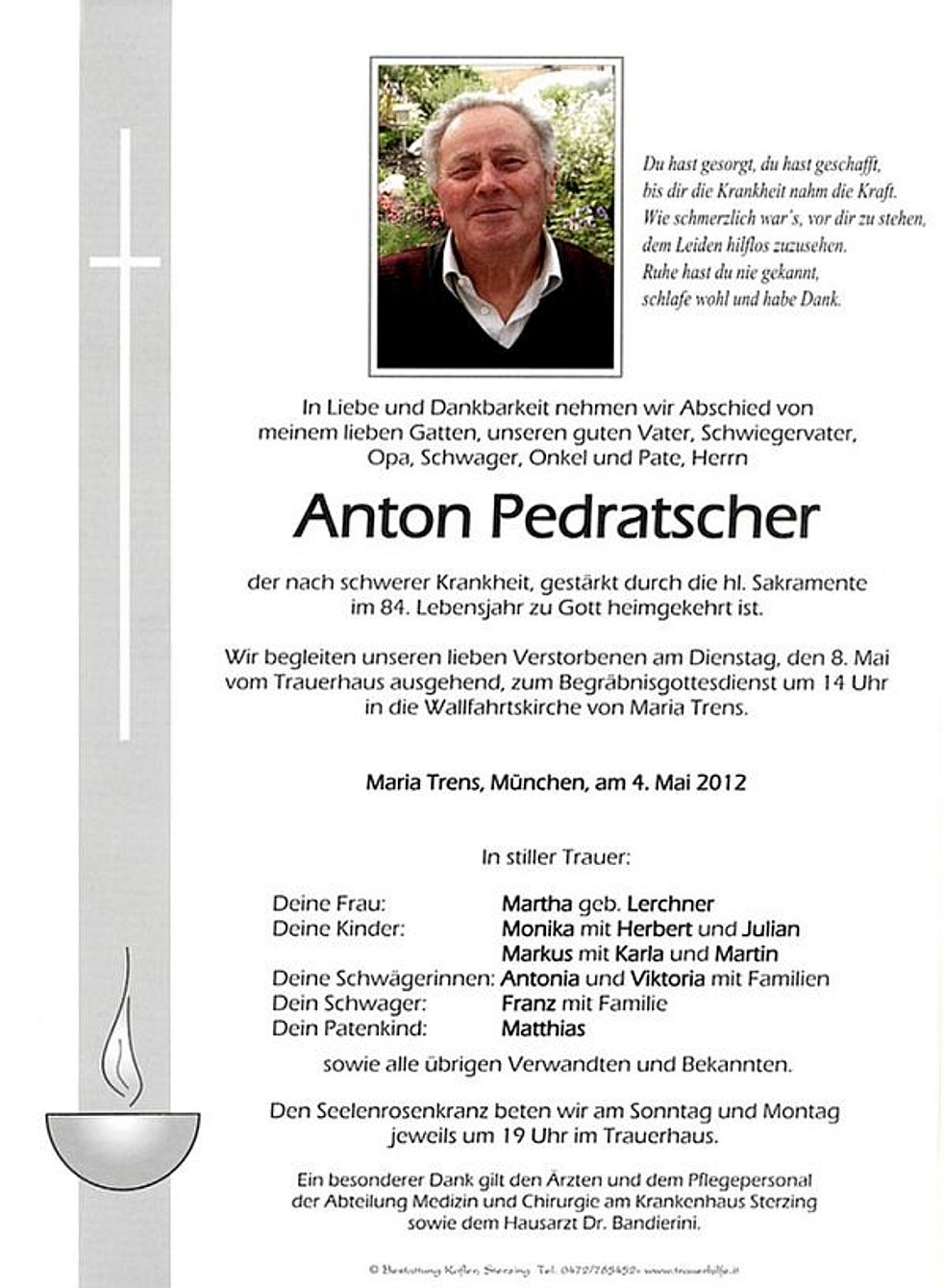 im 84. Lebensjahr zu Gott heimgekehrt ist.