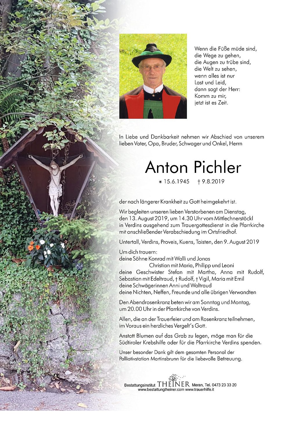 Anstatt Blumen auf das Grab zu legen, möge man für die Südtiroler Krebshilfe oder für die Pfarrkirche Verdins spenden.