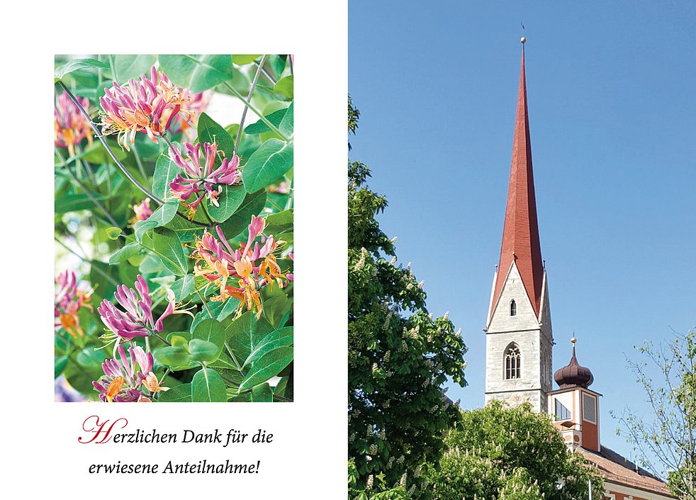 Ein besonderer Dank gilt unserem Hausarzt Dr. Gluderer und dem Hauskrankenpflegedienst für die liebevolle und fürsorgliche Betreuung.