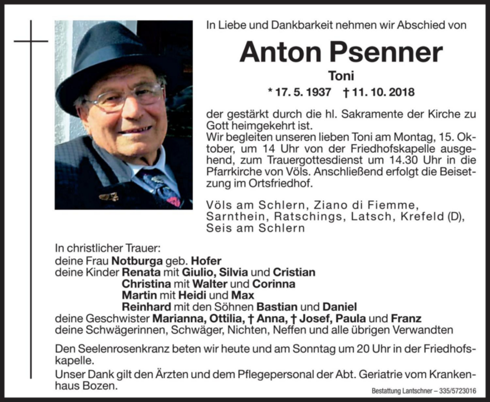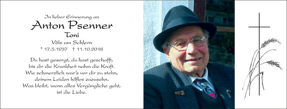 Wir begleiten unseren lieben Toni am Montag, 15. Oktober, um 14 Uhr von der Friedhofskapelle