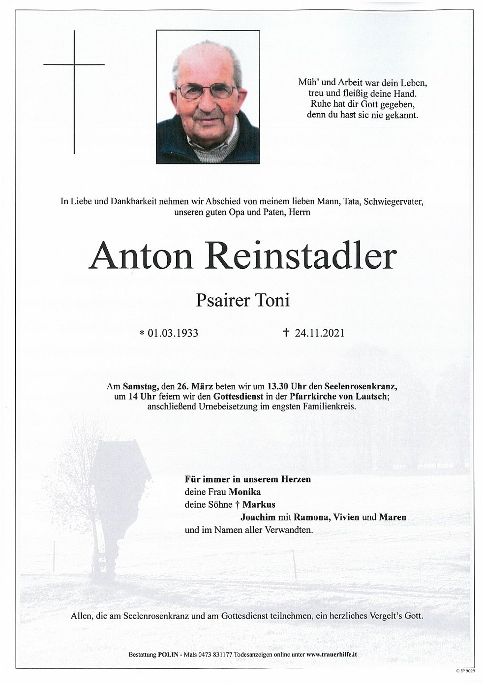 anschließend Urnenbeisetzung im engsten Familienkreis.