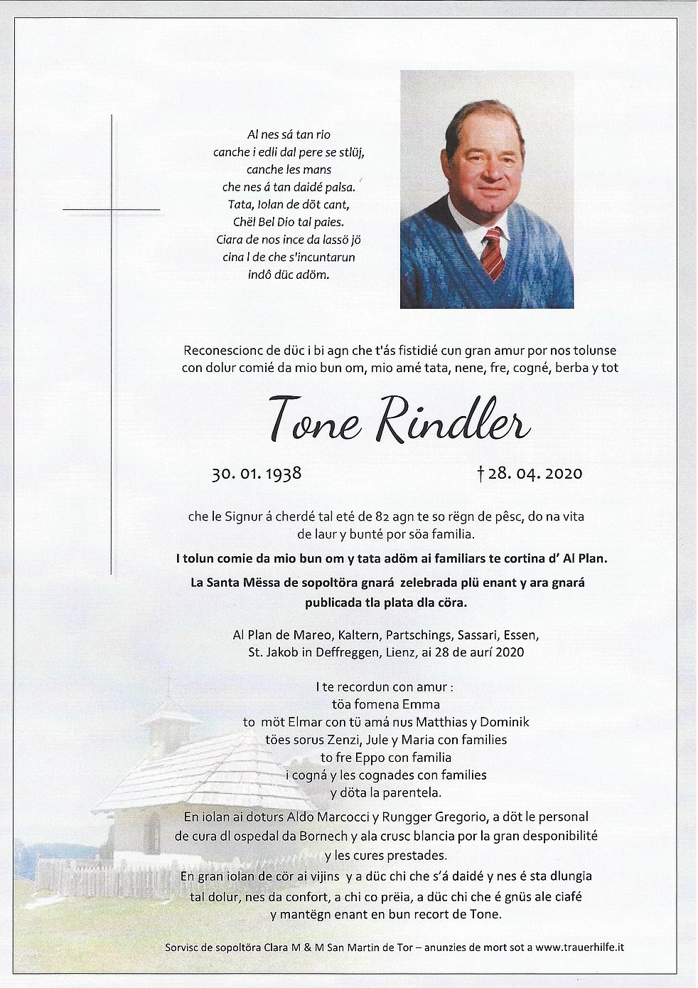 Die Verabschiedung findet im engsten Familienkreis im Friedhof von St. Vigil statt.