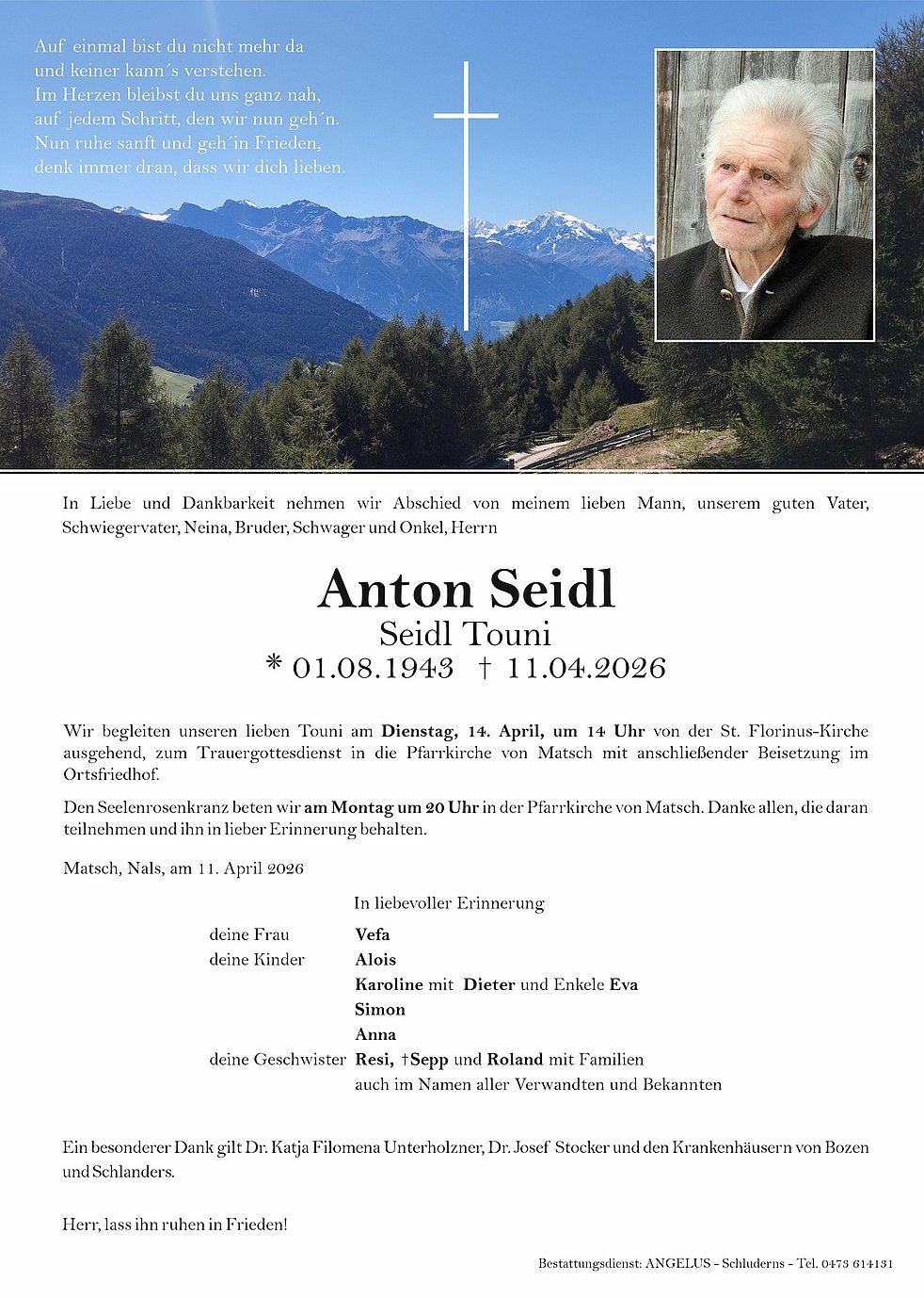 Zum Vrlust fa enkern Touni mechtn miar inser Beileid ausdruckn und winschn enk viel Kroft in der dunklan Zeit.