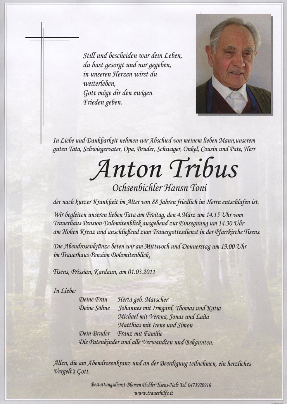 Trauerhaus Pension Dolomitenblick ausgehend zur Einsegnung um 14.30 Uhr