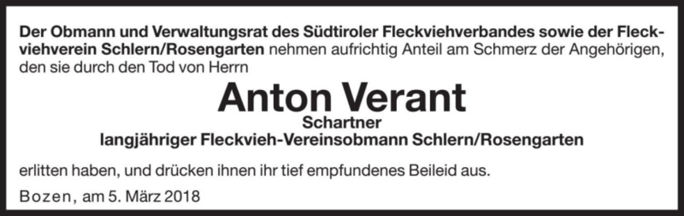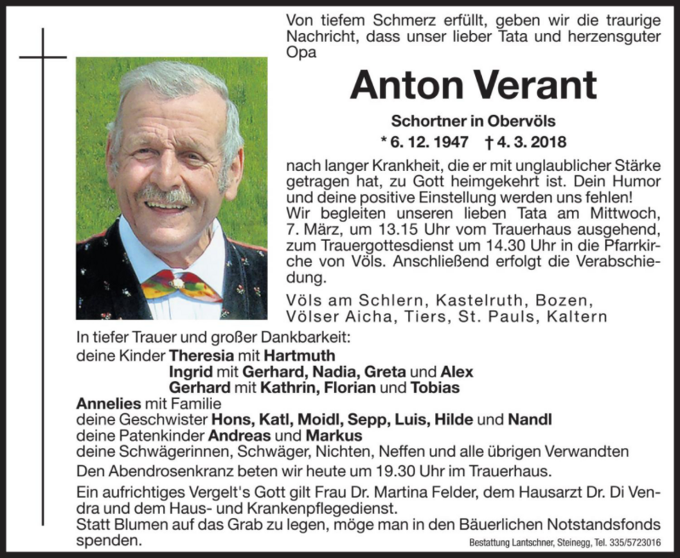 Statt Blumen auf das Grab zu legen, möge man in den Bäuerlichen Notstandsfonds spenden.