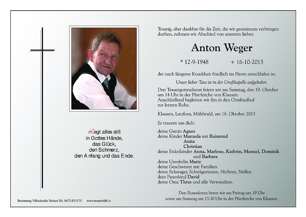 Den Trauergottesdienst feiern wir am Samstag, den 19. Oktober
