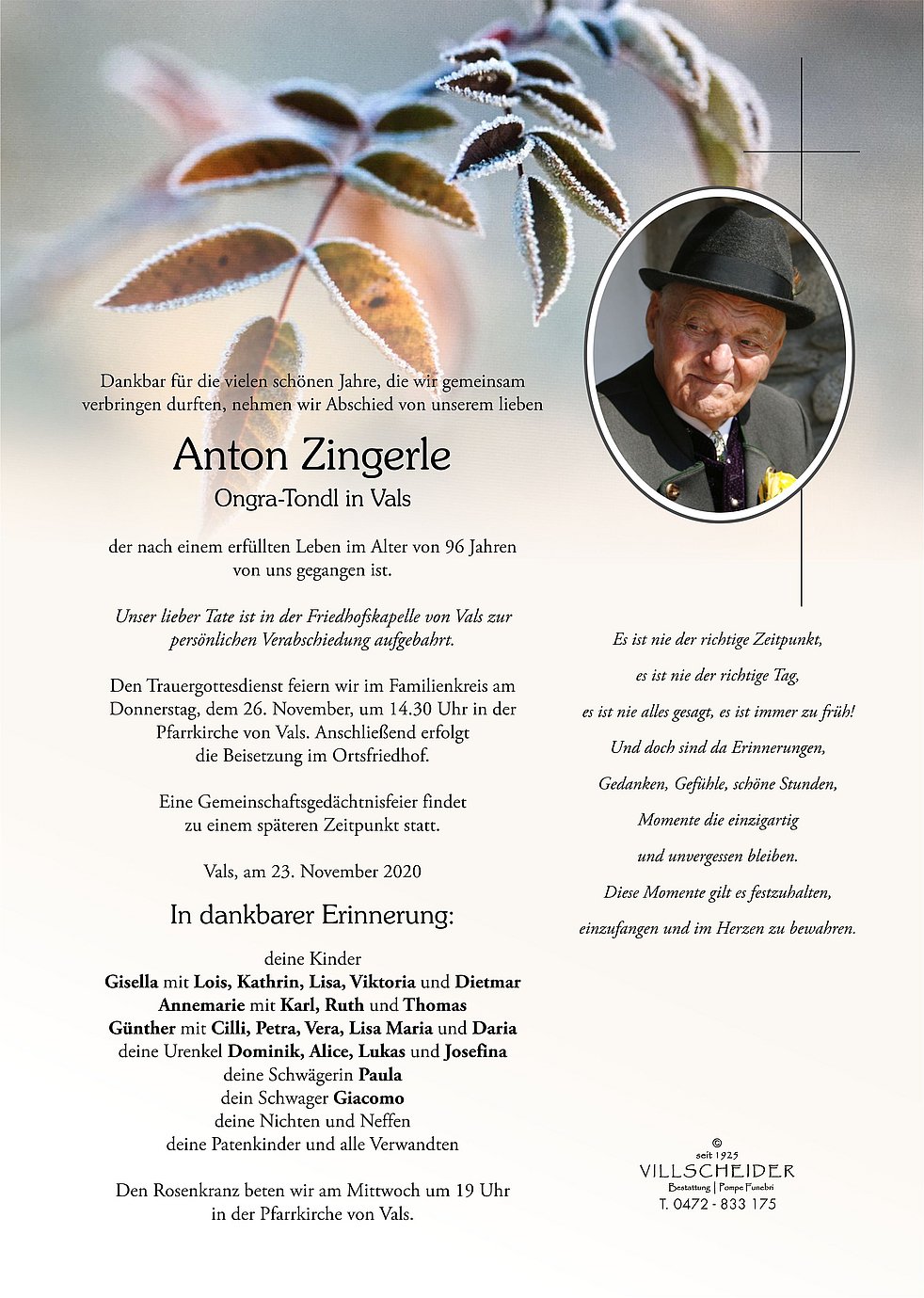 Liebe Gisella mit Familie, wir möchten euch unser tiefstes Mitgefühl zum Ableben eures Vaters aussprechen. Unsere Gedanken begleiten euch und fühl dich fest umarmt. Elisabeth und Helmut