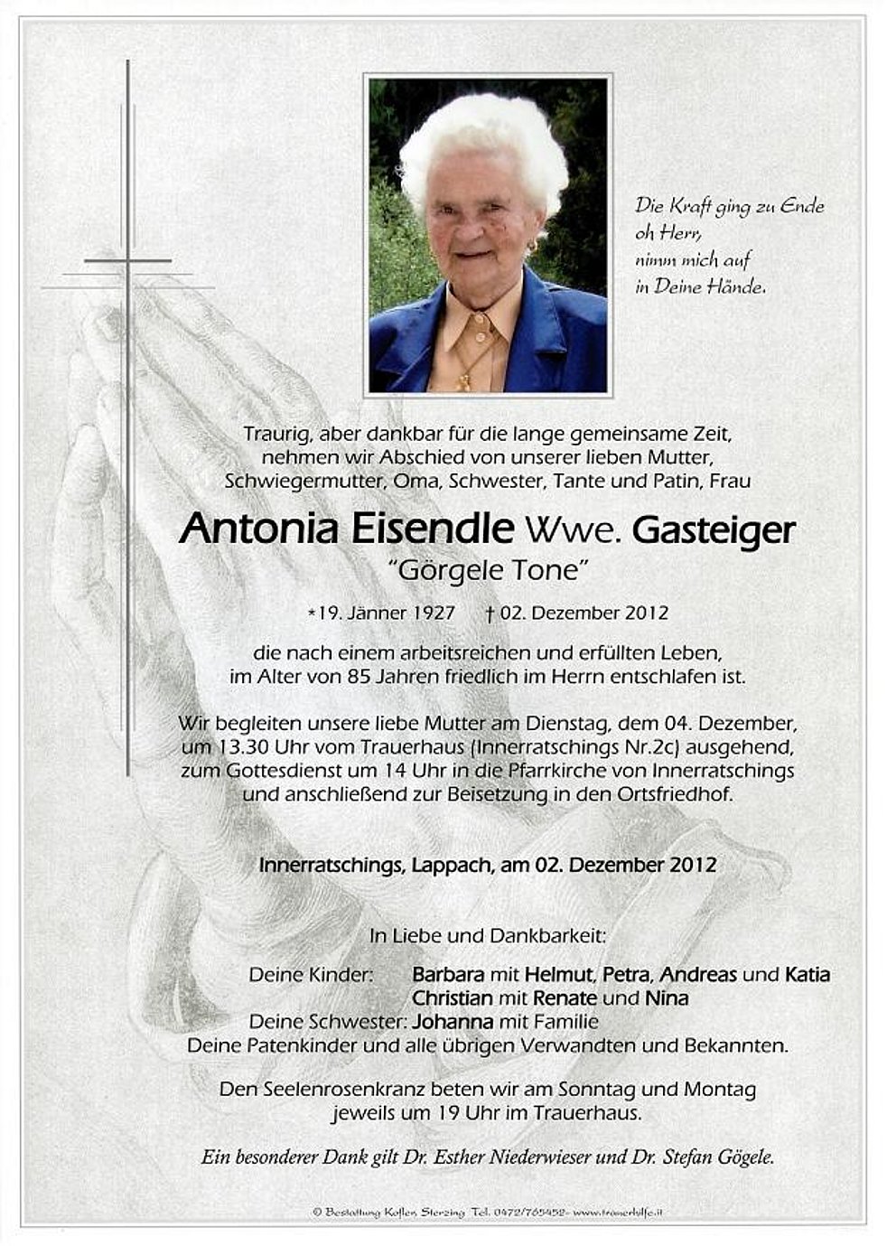 um 13.30 Uhr vom Trauerhaus (Innerratschings Nr.2c) ausgehend,