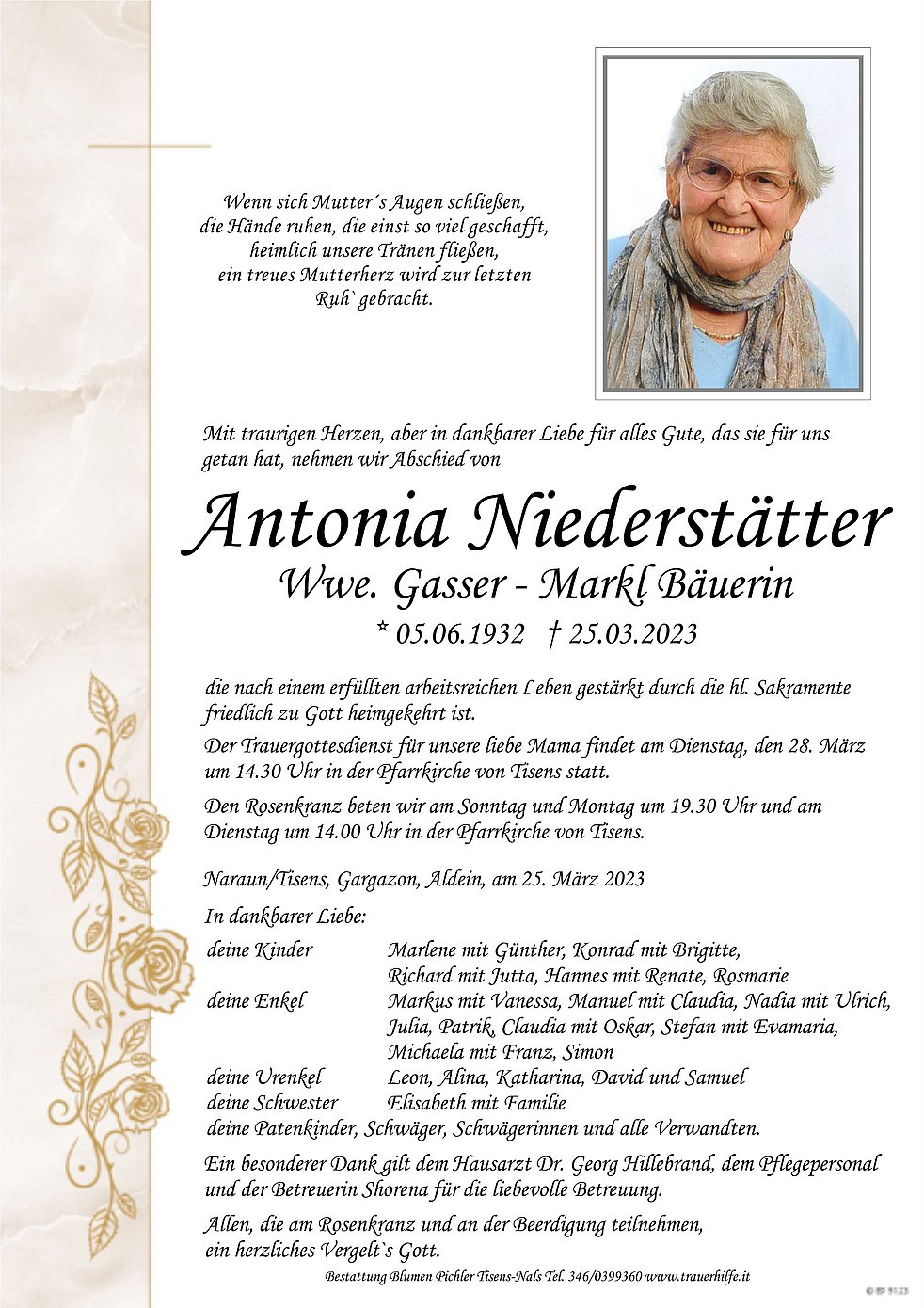Begräbnisgottesdienst: 28.03. - 14:30 Uhr Pfarrkirche Tisens