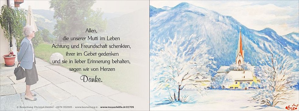 Ein besonderer Dank gilt dem gesamten Team der Tagesbetreuung Memory und der Hausärztin Frau Dr. Brigitte Viehweider.
