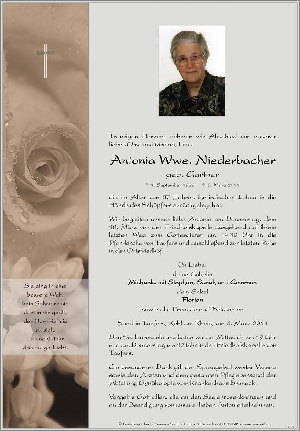 Vergelt’s Gott allen, die an den Seelenrosenkränzen und an der Beerdigung von unserer lieben Antonia teilnehmen.