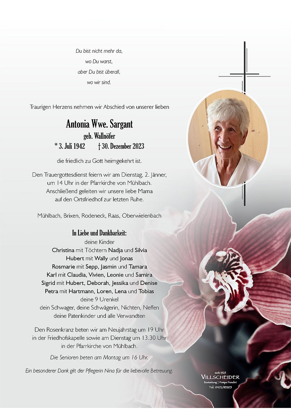 Mama i hon mit dir no in Tog dafor gered. Es isch dir guat gong und i woaß, dass du di soffl gfreit hosch, Tafe fan Noel zu gean und leido hoschs don nimma gschofft. In Gedonkn und Herzen worsch ba mir dobei. Und wenn du zu mir kemm bisch, hobmo olm gikortit, sell wedt mir fahln und i wer di vomissen. Danke fir olls!