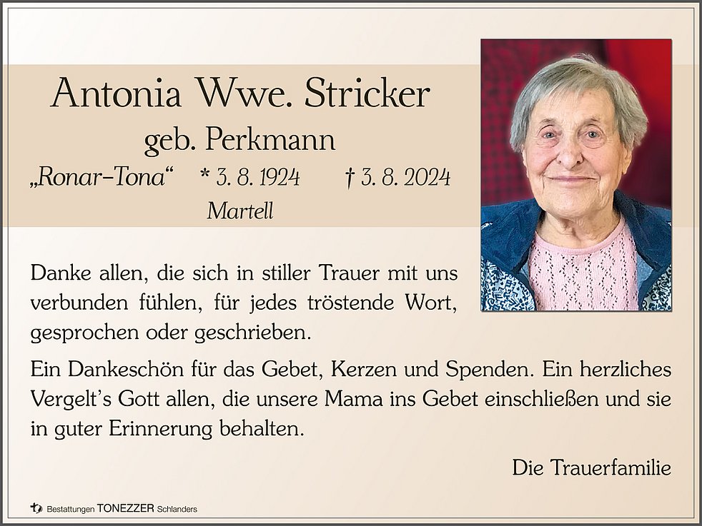Am Samstag, 24. August, um 10 Uhr feiern wir den Begräbnisgottesdienst in der Pfarrkirche von Martell.