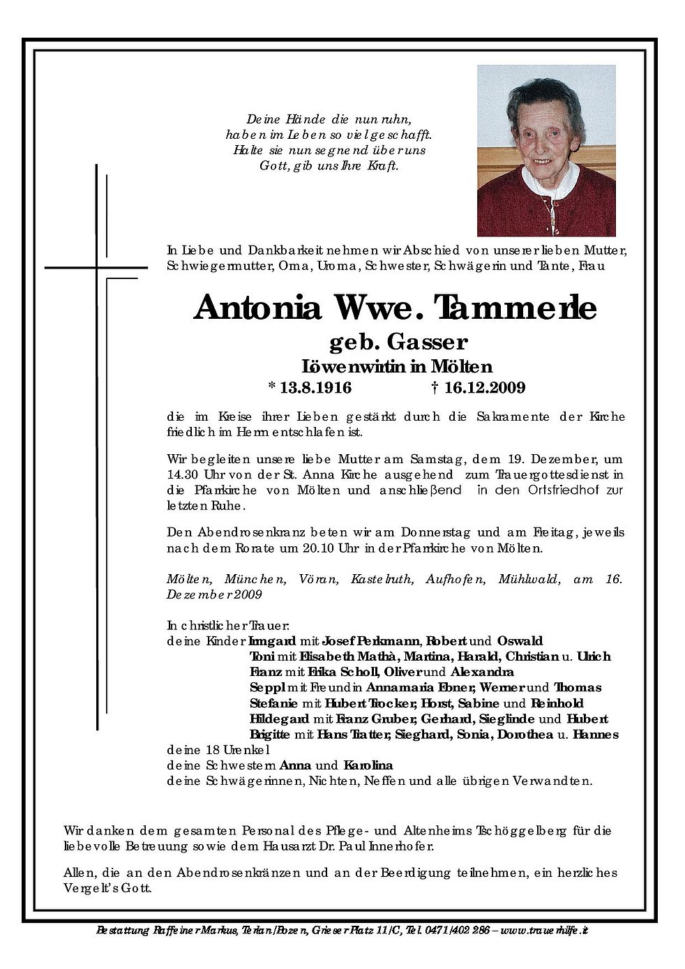 Wir begleiten unsere liebe Mutter am Samstag, dem 19. Dezember, um 14.30 Uhr von der St. Anna Kirche ausgehend zum Trauergottesdienst in die Pfarrkirche von Mölten und anschlieβend in den Ortsfriedhof zur letzten Ruhe.