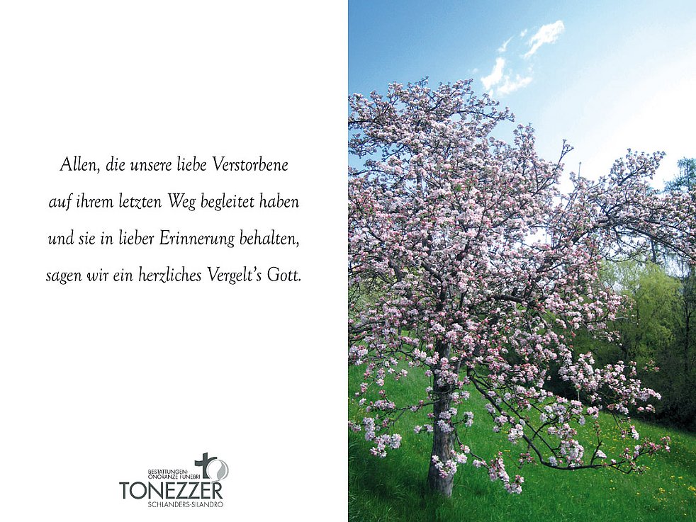Allen, die an den Abendrosenkränzen und am Begräbnis teilnehmen, ein recht herzliches Vergelt’s Gott.