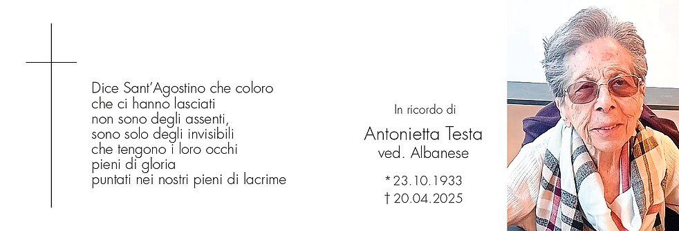 La S. Messa in suffragio verrà celebrata giovedì, 24 aprile alle ore 10.00 nella chiesa parrocchiale di Cristo Re, indi la nostra cara verrà traslata a San Potito Ultra (AV) per i funerali.
