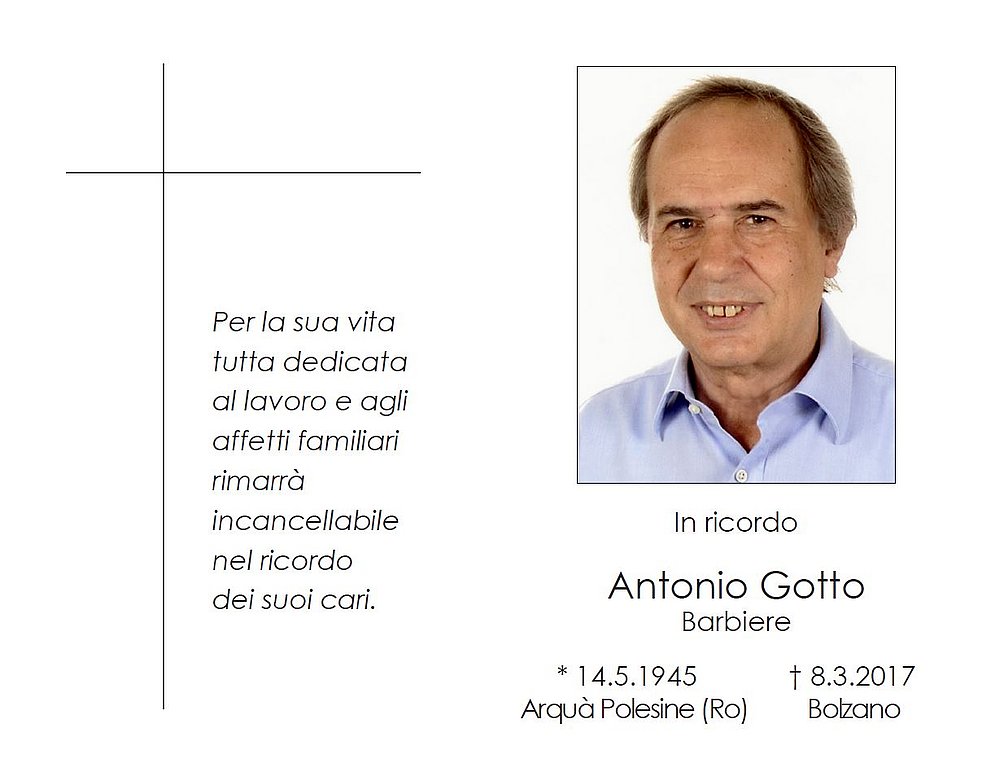 Ne danno il triste annuncio la moglie Rosa, il figlio Andrea con Valentina e Alexander, il fratello Afro con Mirella, il cognato, i nipoti e parenti tutti.