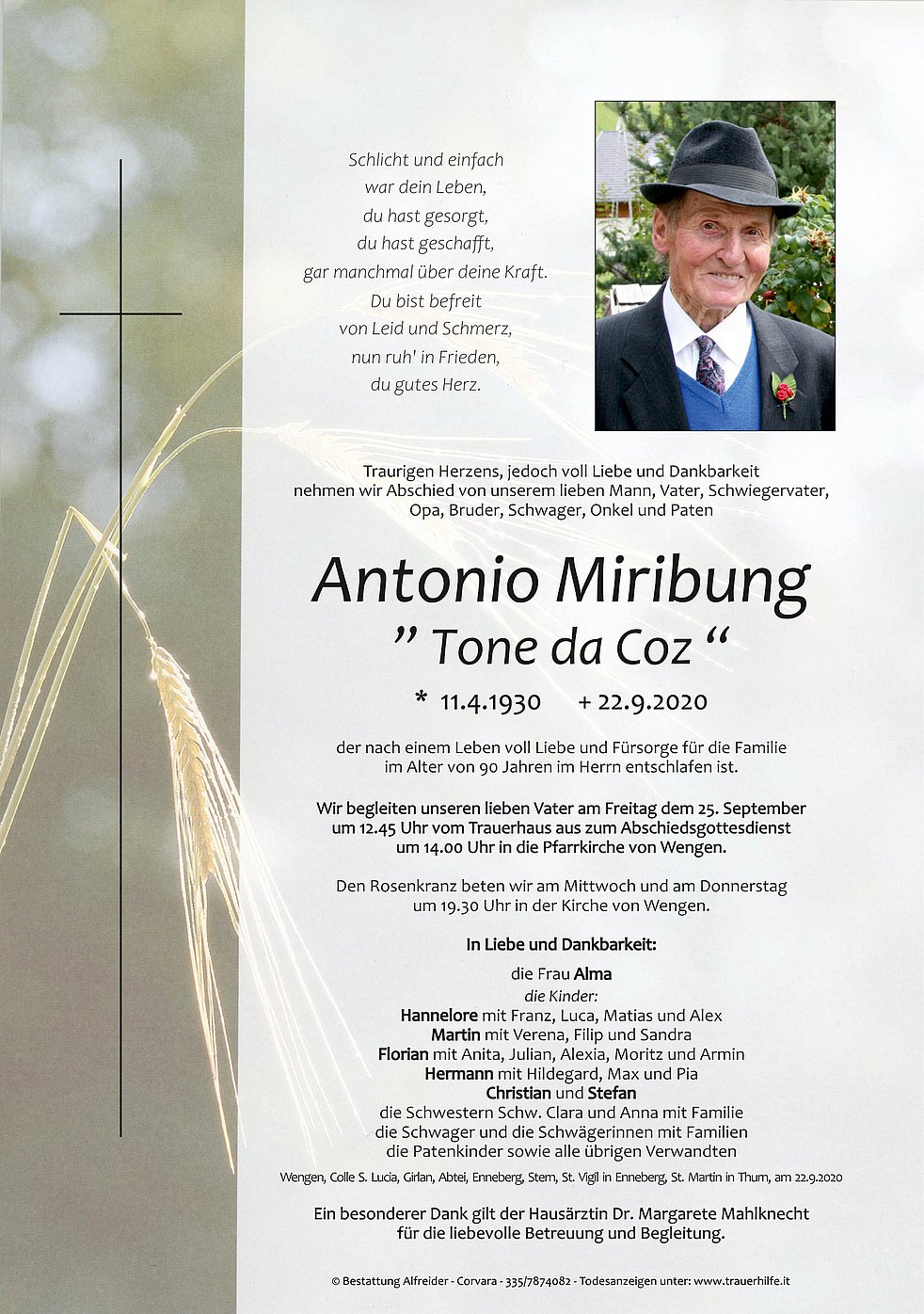 Wir begleiten unseren lieben Vater am Freitag dem 25. September