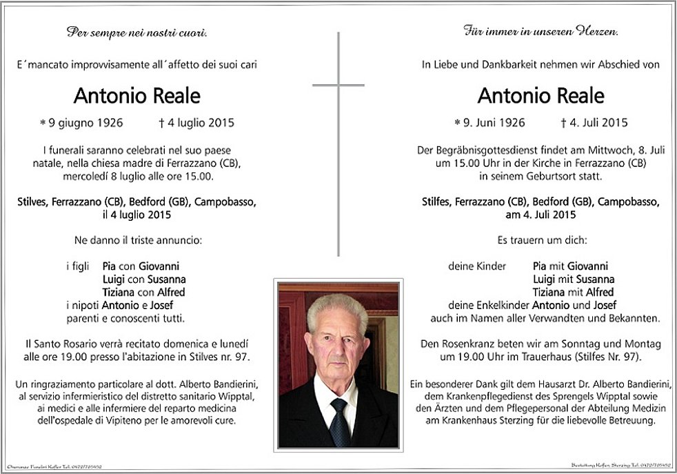 Ein besonderer Dank gilt dem Hausarzt Dr. Alberto Bandierini, dem Krankenpflegedienst